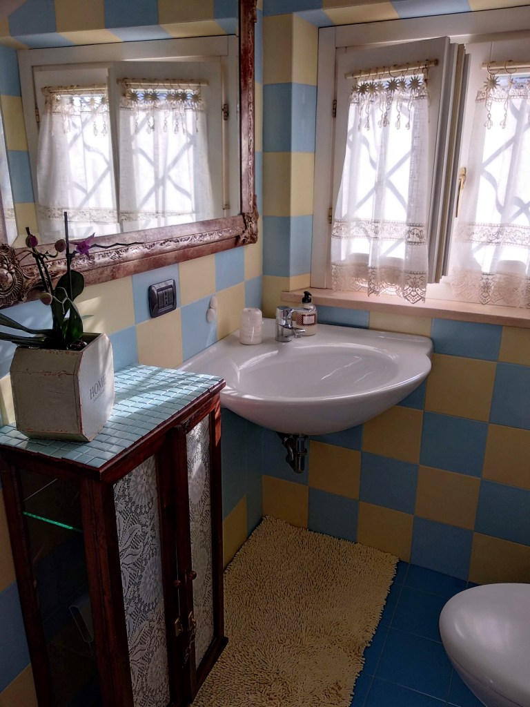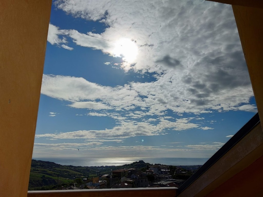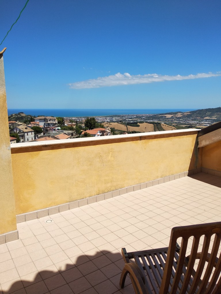 In mansarda, immersa nella quiete del borgo, con terrazzo attrezzato, vista mare.